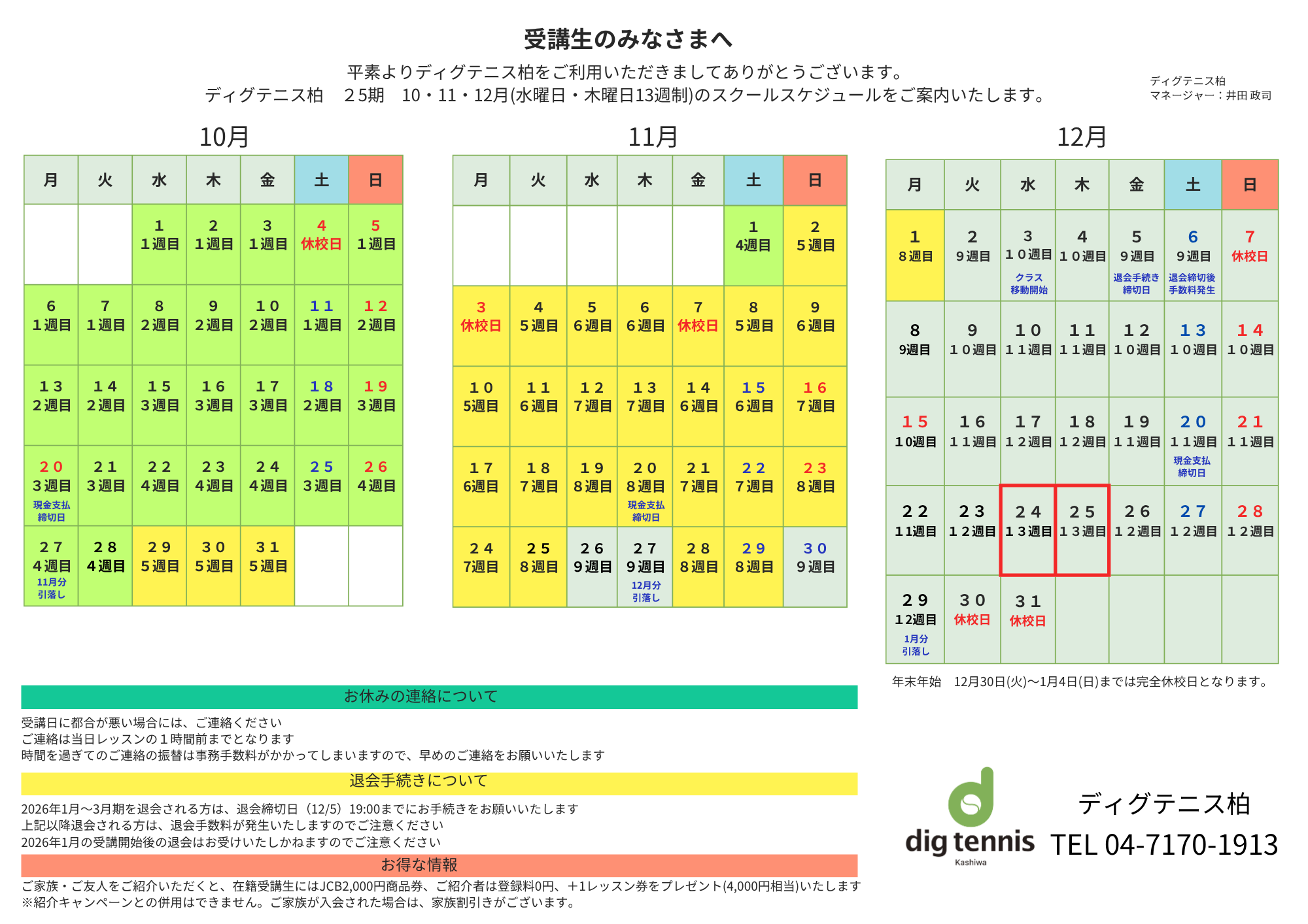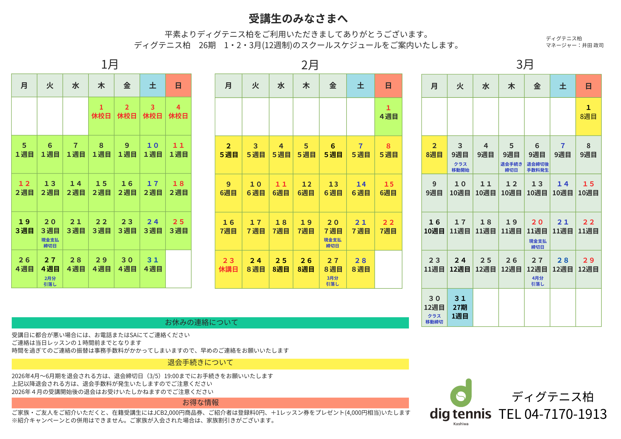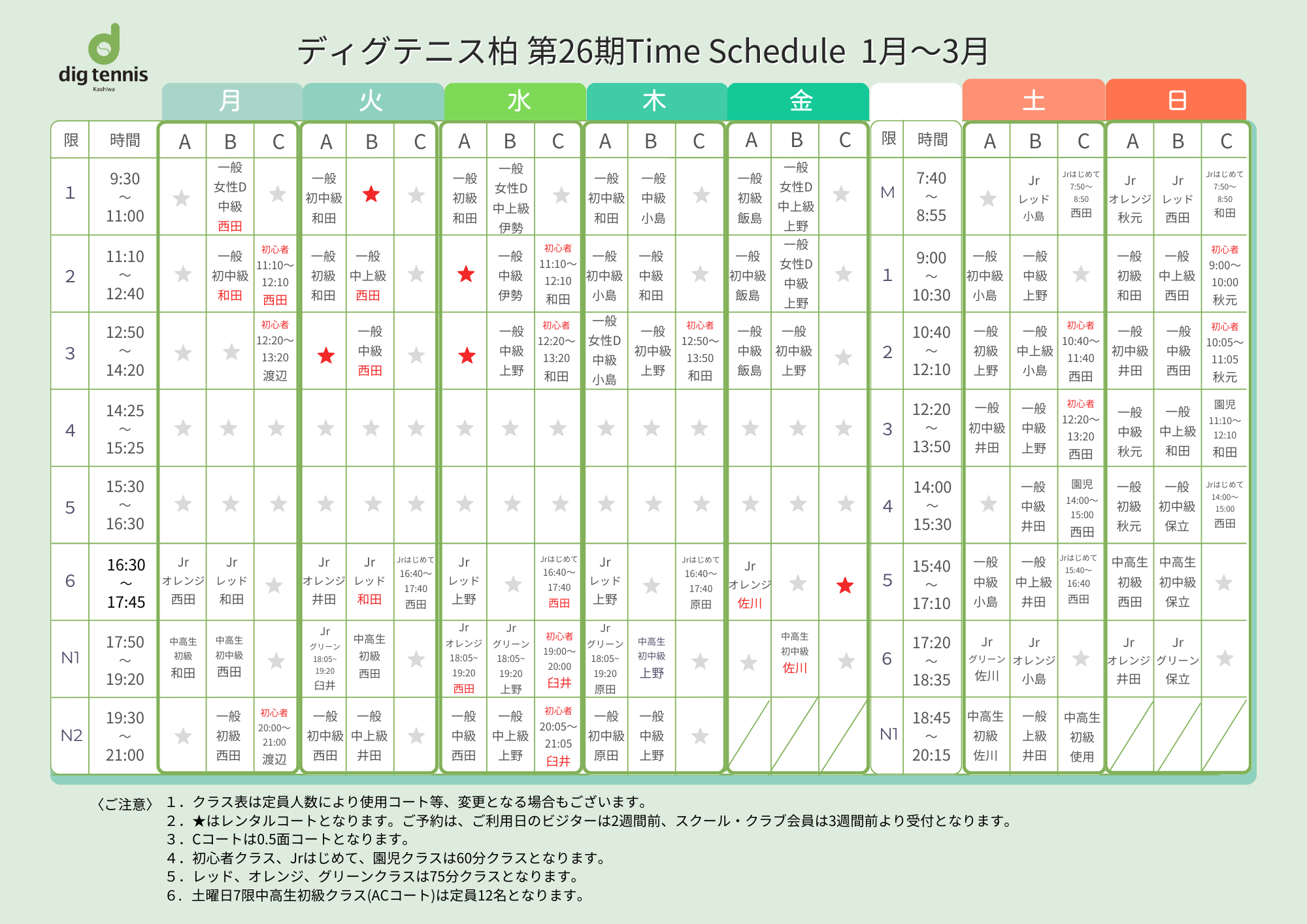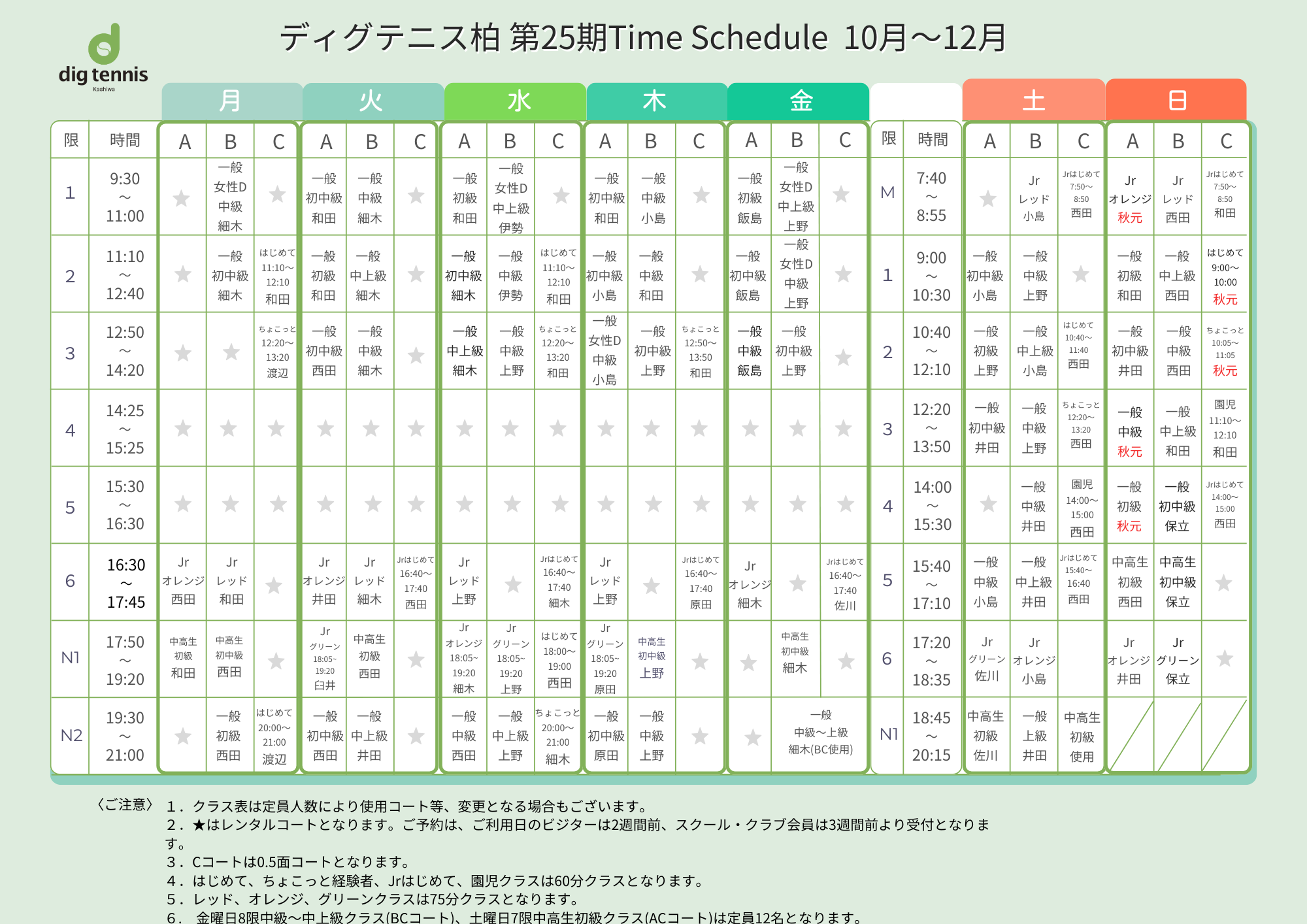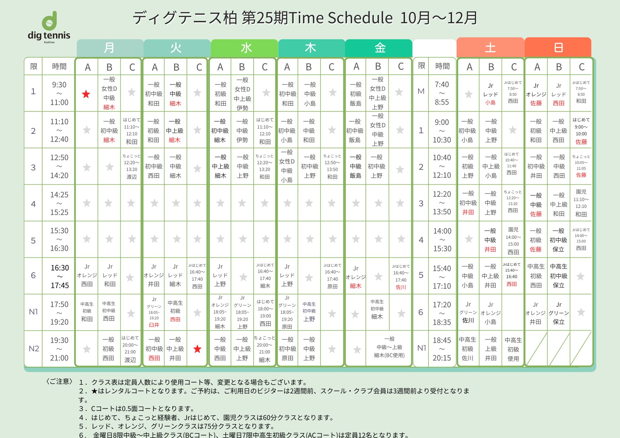 通常レッスンスケジュール
